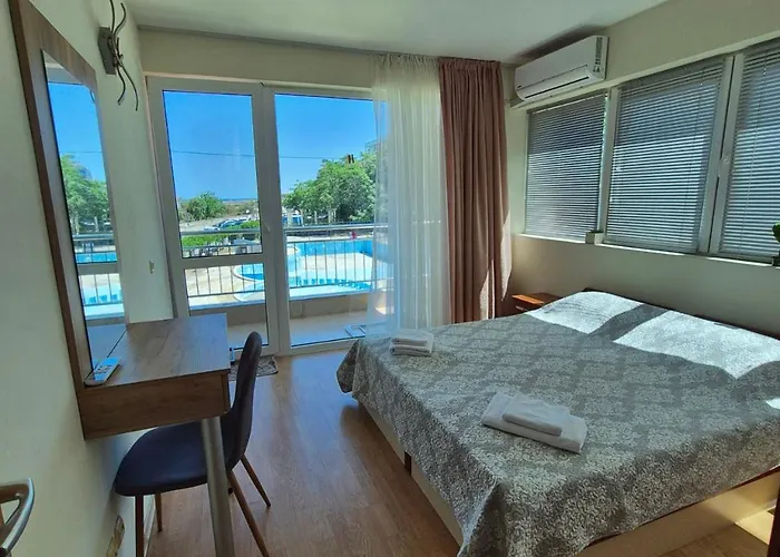 - ❓¿Hay algún buen lugar para comer cerca del apartamento Първа Линия Лазур Поморие?Entre los restaurantes cerca del apartamento Първа Линия Лазур Поморие están Sladkarnitsa Zefir y Rose Garden Restaurant Pomorie.